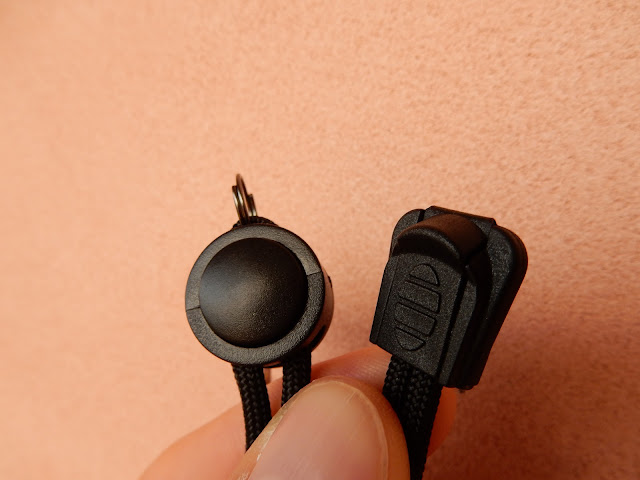 ...ad esempio vediamo da subito due sacchetti con imbustati la prolunga ( per 2 CR123A ) e il Lanyard con i due O.R. di ricambio. Sopra, in particolare, il lanyard ben fatto con piccolo moschettone e anellino a molla ( da inserire nel forellino al tailcap ). Il moschettone si può usare negli spazi vuoti della clip fissa mentre l'anellino si può inserire in coda